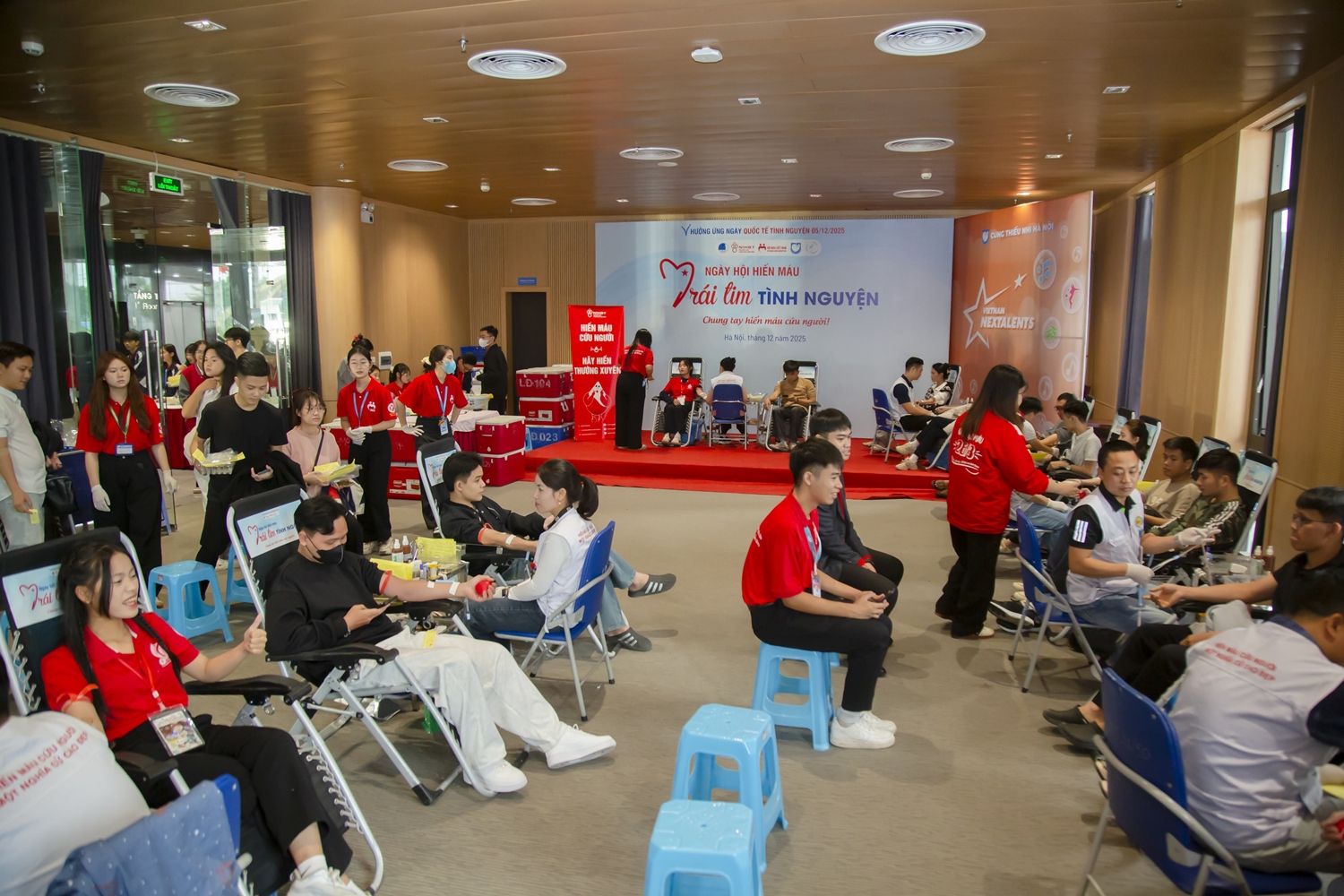 Ngày 7/12/2025, tại Cung Thiếu nhi Hà Nội, Viện Huyết học – Truyền máu Trung ương phối hợp với Hội Thanh niên Vận động hiến máu Việt Nam tổ chức ngày hội hiến máu “Trái tim tình nguyện” năm 2025.