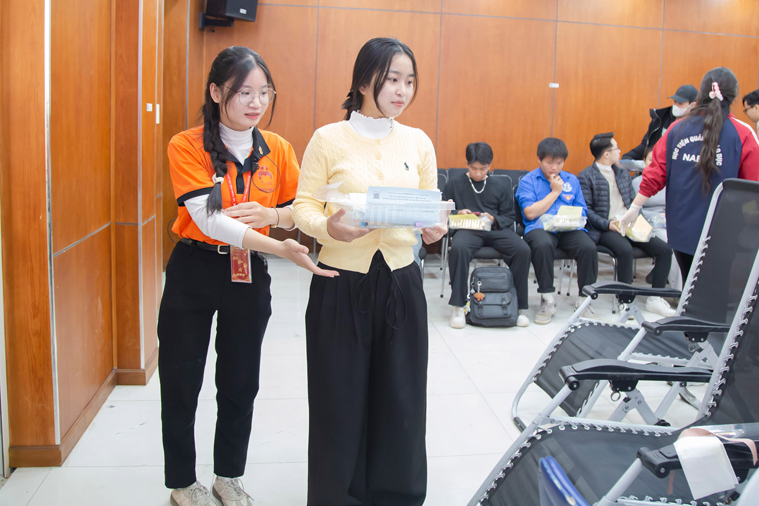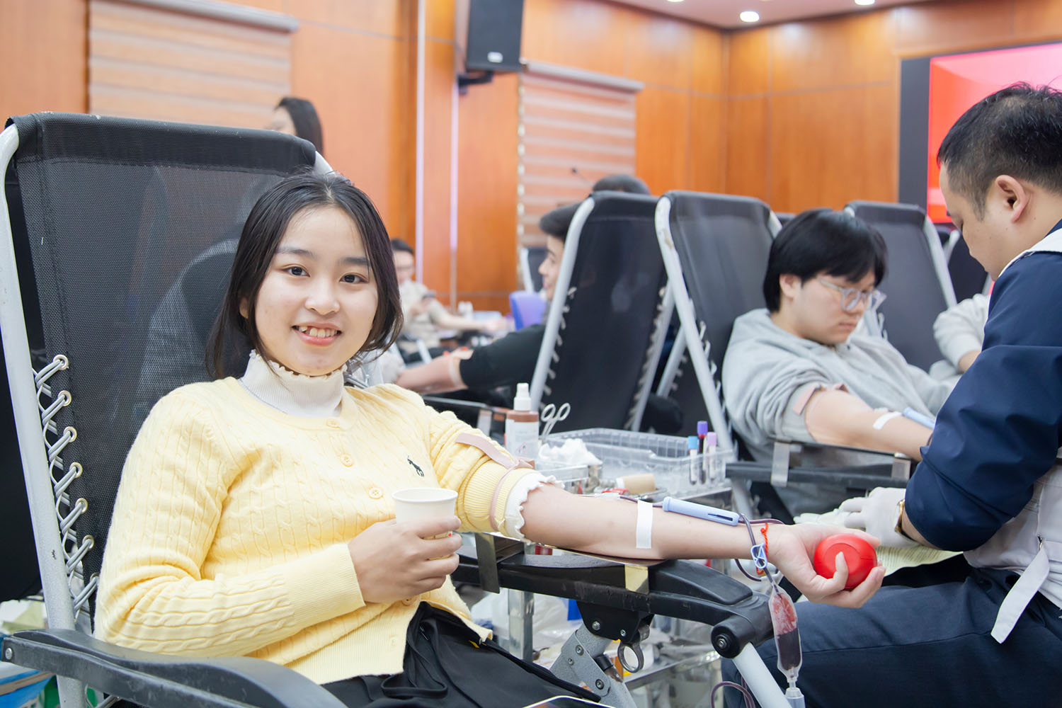 Tinh thần ấy tiếp tục được lan tỏa rõ nét qua những câu chuyện đầy cảm xúc của các bạn sinh viên. Chia sẻ sau hai lần tham gia hiến máu, bạn Nguyễn Thị Cẩm Tiên (sinh viên năm nhất) bày tỏ niềm tự hào: “Mặc dù vẫn có chút lo sợ, nhưng giọt máu của em có thể góp phần cứu sống người bệnh là điều rất cao đẹp và đáng quý.