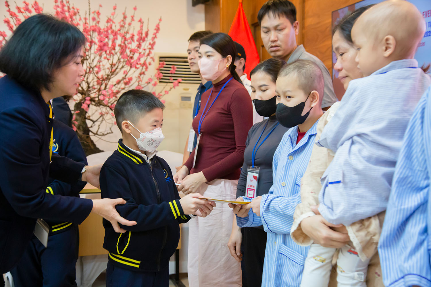Bệnh nhi và người nhà người bệnh đã có mặt tại buổi trao quà thiện nguyện do Trường Liên cấp Everest trao tặng.
