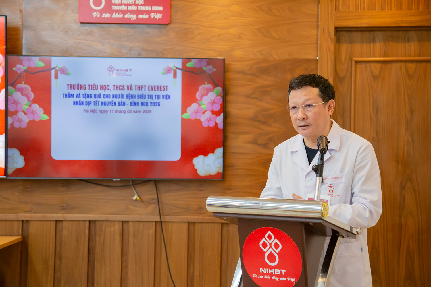 Trong không khí ấm áp chuẩn bị đón Tết Nguyên đán, ngày 11/2/2026 (24 tháng Chạp), đại diện Trường Liên cấp Everest gồm Ban giám hiệu, phụ huynh và học sinh đã đến thăm và tặng quà tại Viện Huyết học – Truyền máu TW.
