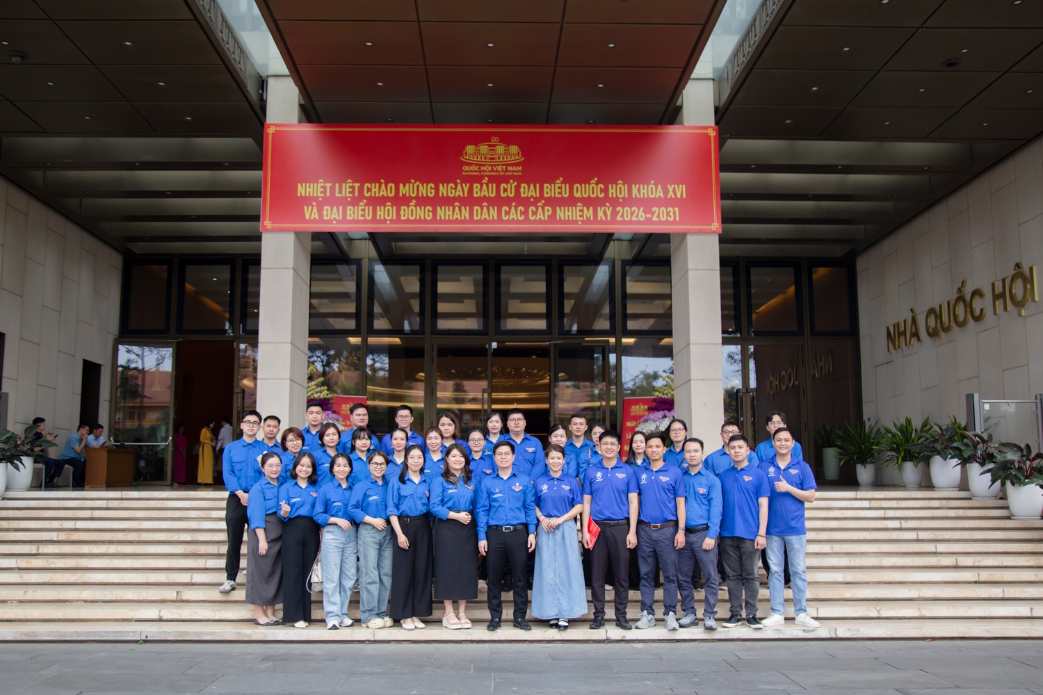 Đoàn Thanh niên Viện chụp ảnh lưu niệm tại Nhà Quốc hội.