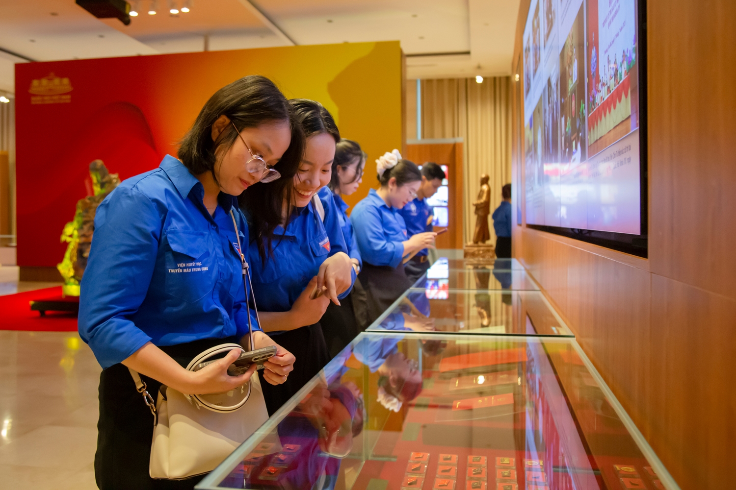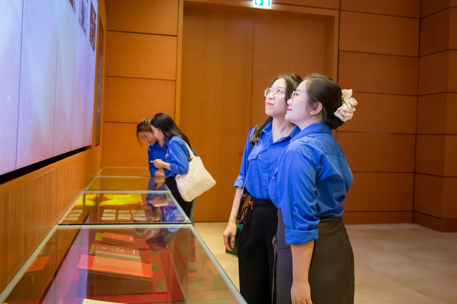 Sau khi tham quan, nghe giới thiệu về phòng họp Diên Hồng và Bảo tàng Quốc hội Việt Nam, các đoàn viên, thanh niên tìm hiểu khu trưng bày Những khám phá khảo cổ học dưới lòng đất Nhà Quốc hội và phòng chiếu phim.