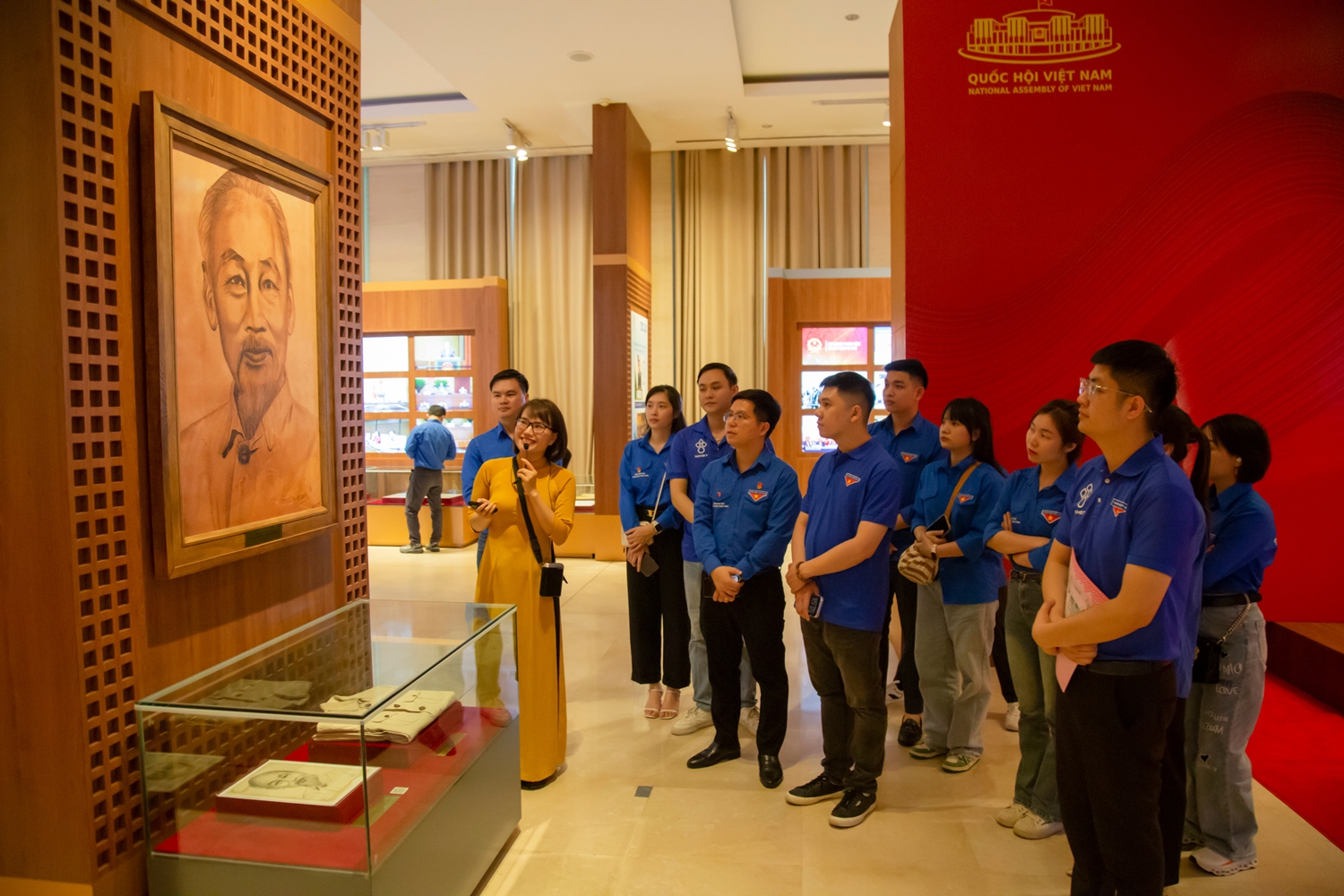 Các đoàn viên, thanh niên tìm hiểu lịch sử tại Bảo tàng Quốc hội Việt Nam.