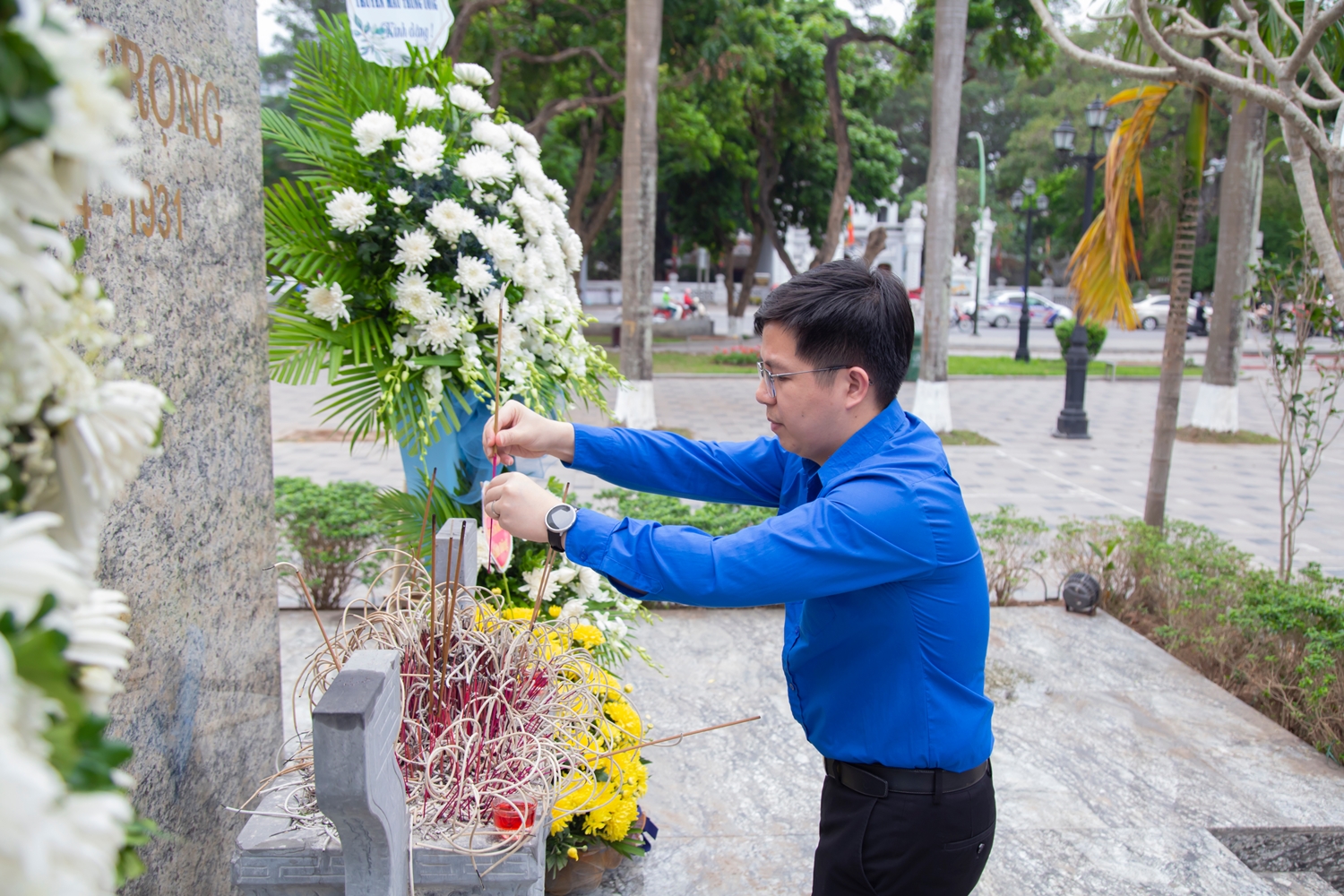 Đoàn Thanh niên Viện dâng hoa, dâng hương lên Tượng đài Anh hùng liệt sĩ Lý Tự Trọng.