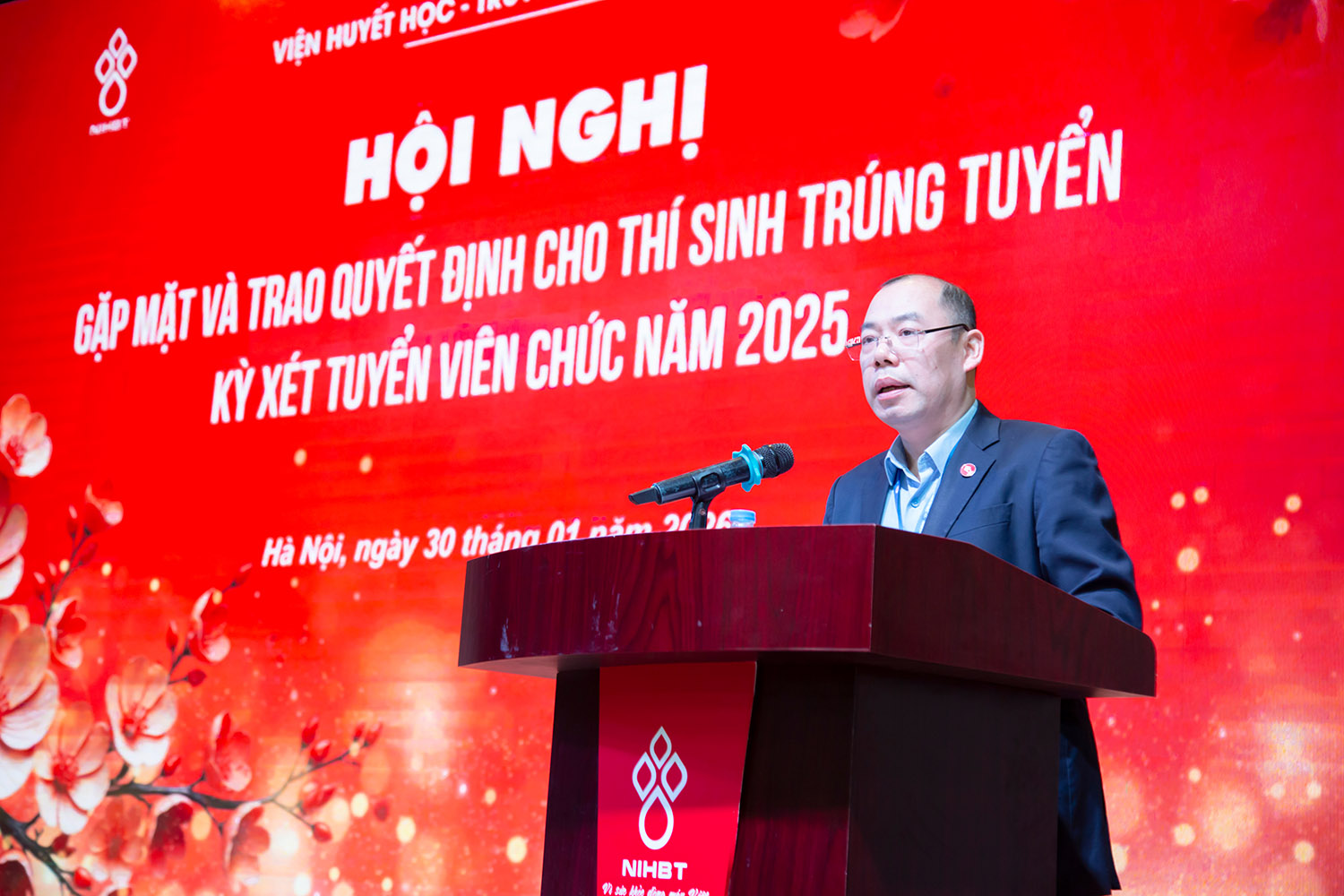 Thay mặt Đảng ủy, Ban lãnh đạo Viện, tôi chúc mừng các bạn trở thành thành viên của Viện Huyết học – Truyền máu TW, chúc các bạn luôn mạnh khỏe và gặt hái được nhiều thành công”.