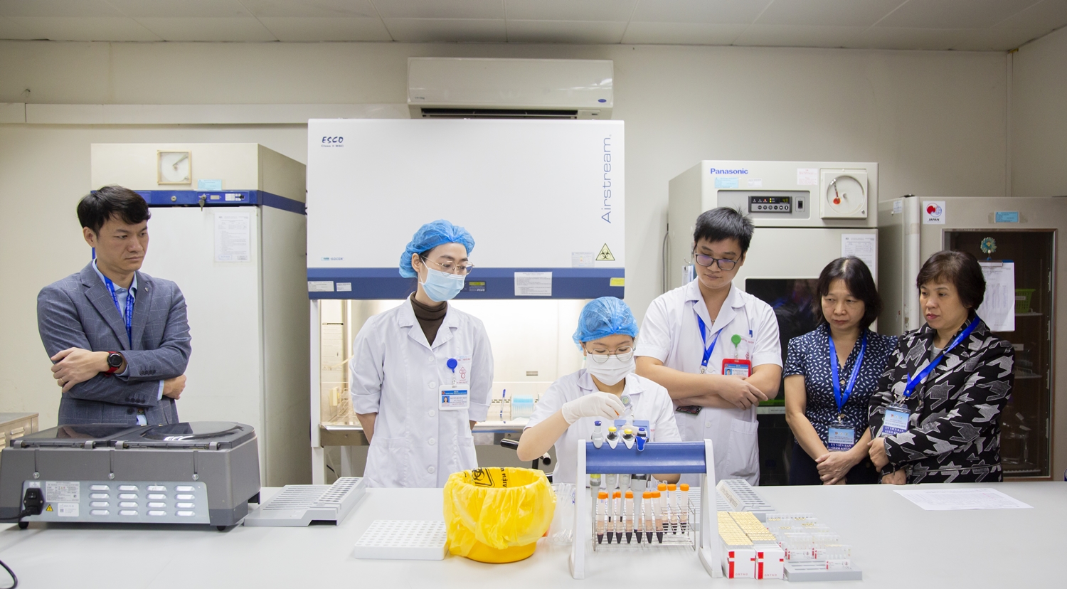 Thực hiện thao tác kỹ thuật tại phòng xét nghiệm.
