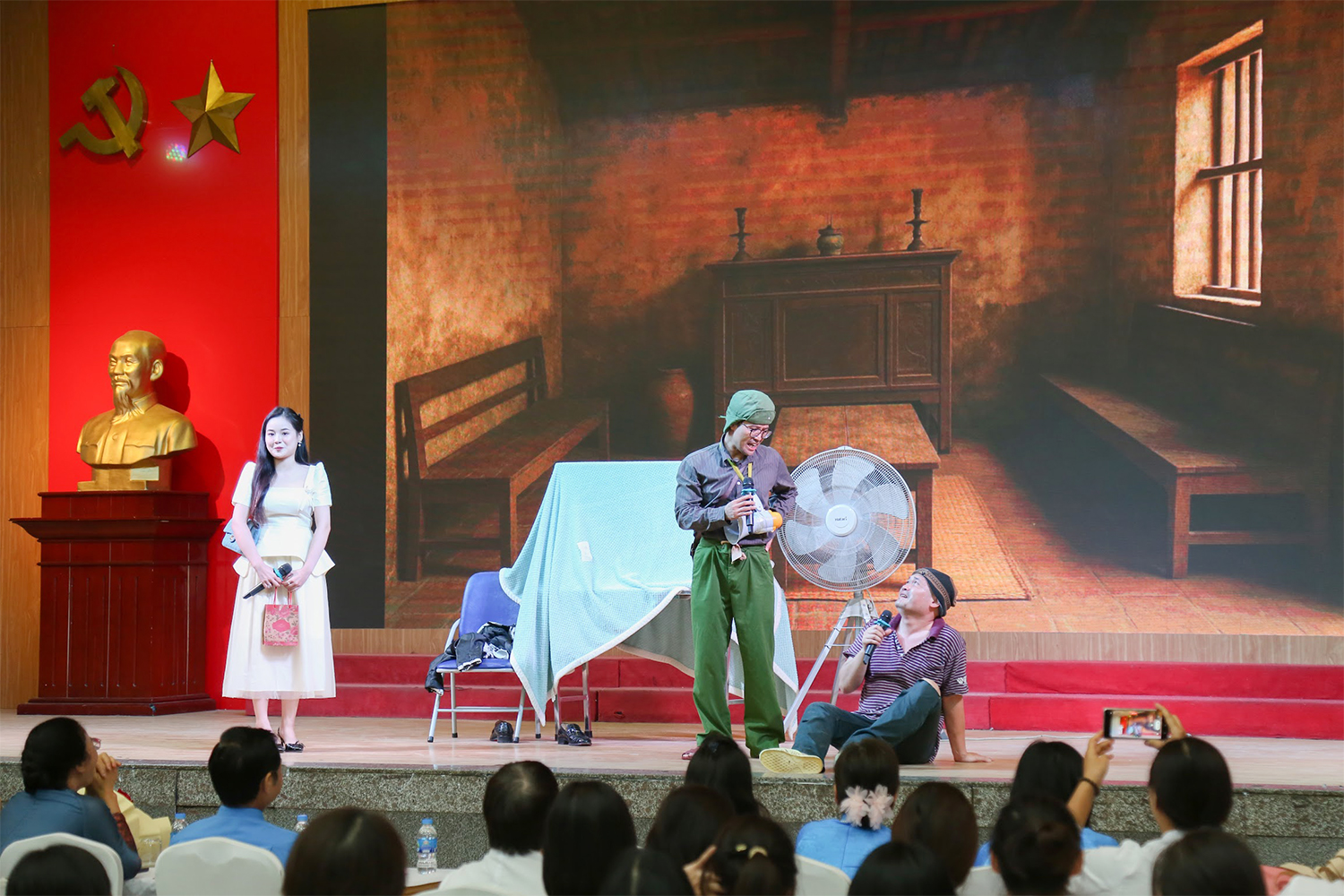 Dịp này, các cán bộ nữ của Viện cũng được gặp gỡ, giao lưu với hai nghệ sỹ trẻ, NSƯT. Thái Sơn và NS. Mạnh Cường (Cường Cá), những gương mặt quen thuộc, duyên dáng, luôn mang đến tiếng cười sảng khoái và tràn đầy năng lượng tích cực cho mọi người ngay tại sân khấu của Viện Huyết học – Truyền máu Trung ương.