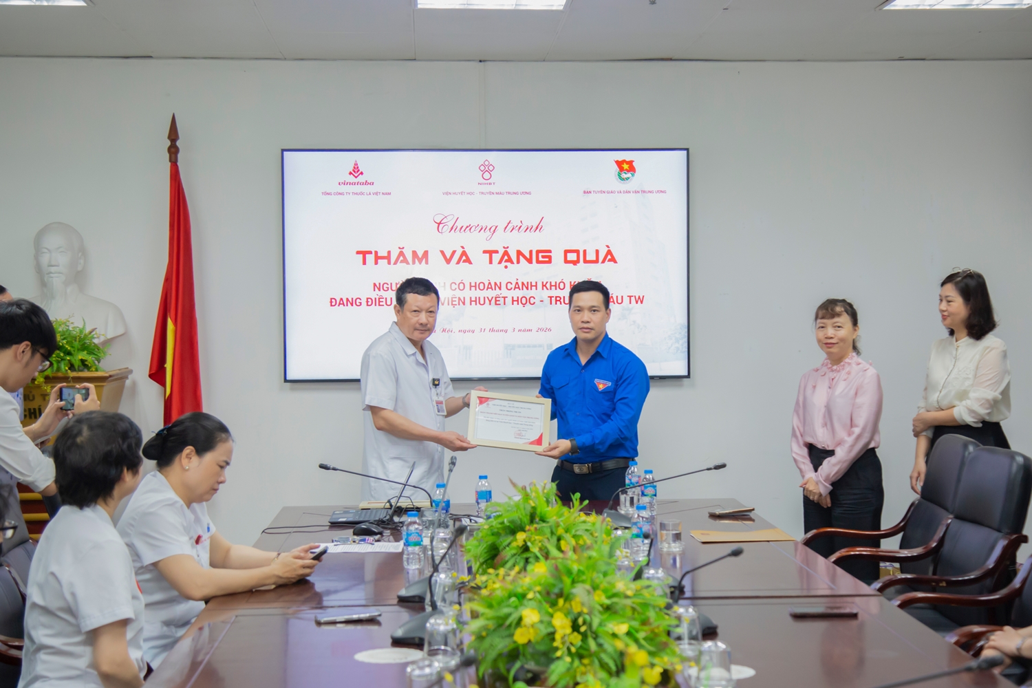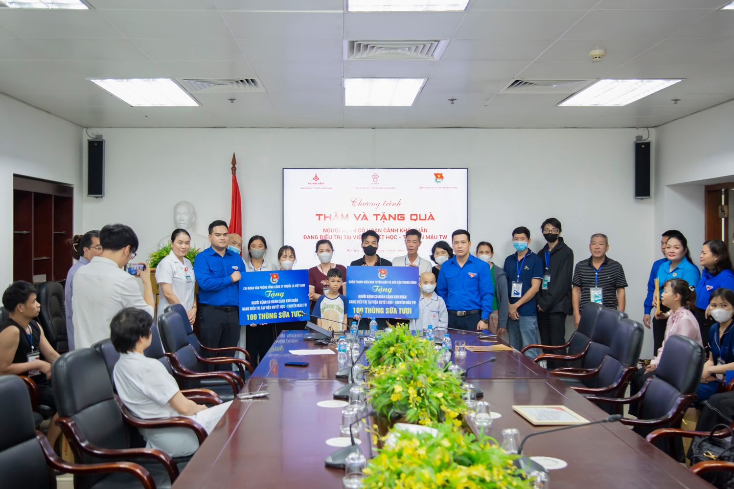 Ngày 31/3/2026, Đoàn Thanh niên Ban Tuyên giáo và Dân vận TW phối hợp cùng Tổng Công ty Thuốc lá Việt Nam đã đến thăm và tặng quà cho người bệnh đang điều trị tại Viện Huyết học – Truyền máu TW. 25 phần quà hỗ trợ chi phí điều trị cho người có hoàn cảnh khó khăn và 200 thùng sữa tươi đã được trao tặng cho người bệnh.