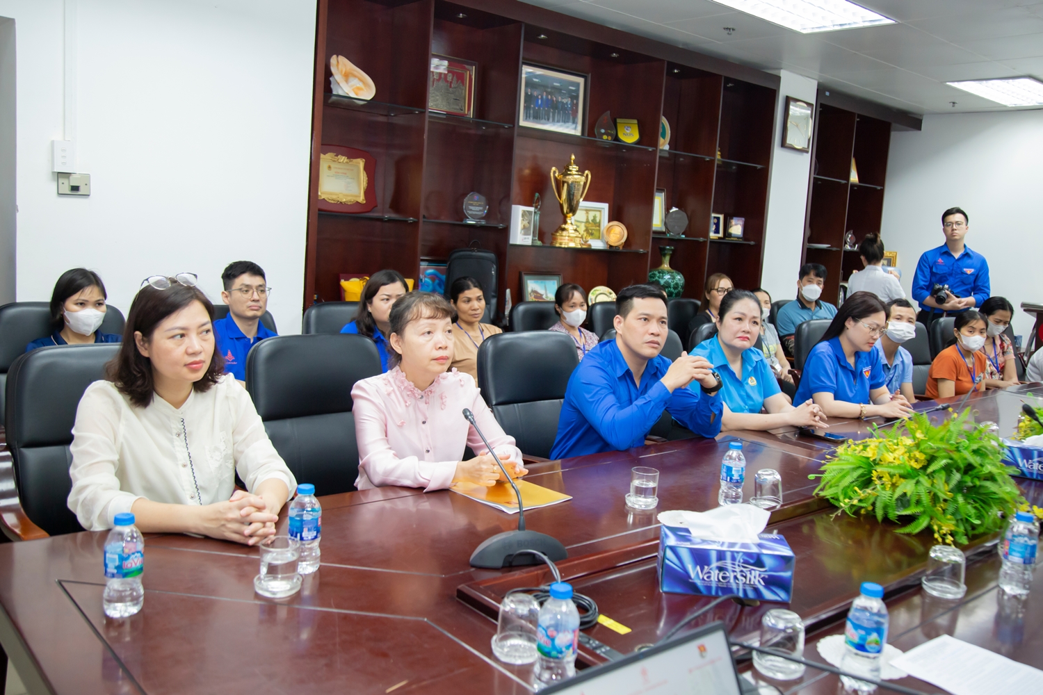 Tham dự chương trình có đ/c Đào Văn Hiếu, Uỷ viên Ban Chấp hành Đảng bộ, Bí thư Chi đoàn Ban Tuyên giáo và Dân vận TW (thứ 3 từ trái sang); về phía Tổng Công ty Thuốc lá Việt Nam có đ/c Trần Thị Hoàng Mai, Phó Bí thư Thường trực Đảng uỷ Tổng Công ty (thứ 2 từ trái sang); đ/c Ngô Thị Ngọc Duyên, Uỷ viên Ban Thường vụ Đảng uỷ, Trưởng Ban Tuyên giáo Đảng uỷ Tổng Công ty (ngồi đầu tiên) cùng các đồng chí trong BCH Công đoàn, Đoàn Thanh niên.